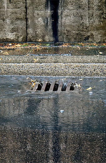Emergency attendance for properties with water pooling in yards, driveways, or near structures due to blocked surface drains or strip grates.